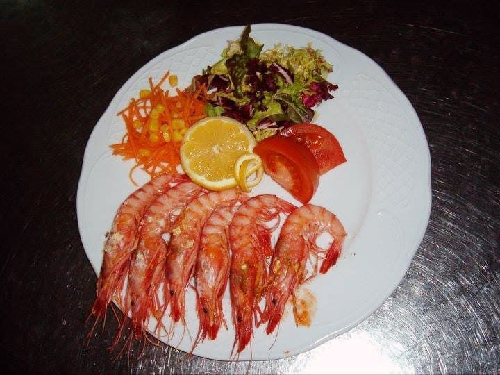 Los mariscos frescos son una de las especialidades de la casa, destacando las gambas rojas. En pescados, contamos con bonito que hacemos en marmitako, bacalao al pil-pil y merluza a la vasca.