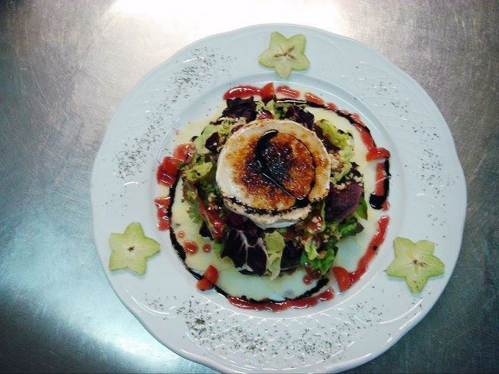 - Ensalada de queso de cabra con vinagreta de frambuesa